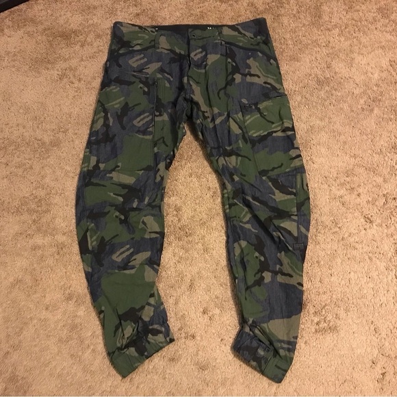 G Star Raw Powel 3D Tapered Cuffed Pants Mens Size 38/32 Zip Pockets Jean Camo