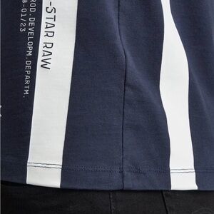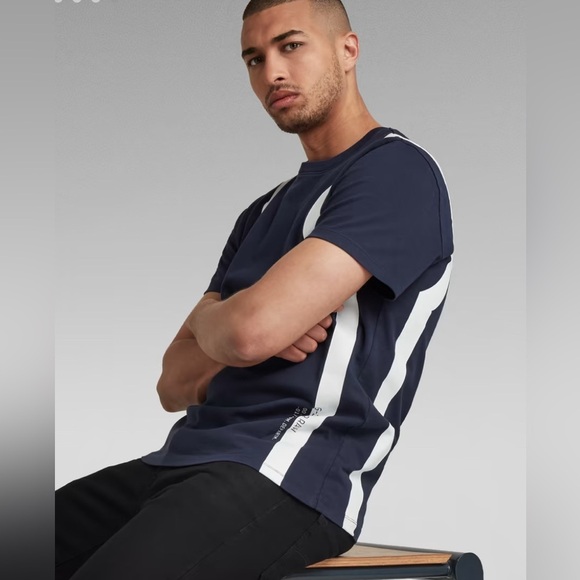 G star SPORT INSERT T-SHIRT Printed stripes are placed along the sides of this T-Shirt, where a graphic print is added to the lower front. This Sport Insert T-Shirt is designed in a straight fit and offers a ribbed finished neckline.