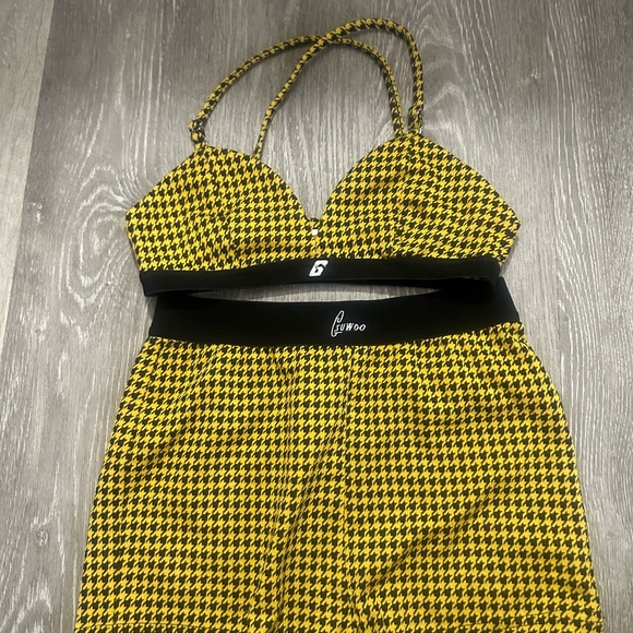 Elevate your wardrobe with the G Woo Stylish Black and Yellow Houndstooth Bra. Perfect for adding a touch of elegance to your everyday look.