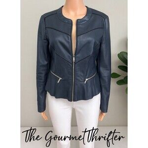 G by GUESS Black Faux Leather Moto Jacket Womens Medium Peplum Zip Up Biker Style