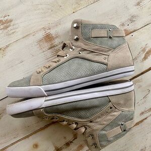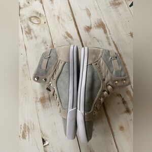 G by GUESS hi-top sneakers GGOPALL 12 womens sz 10 shoes gray tan streetwear EUC