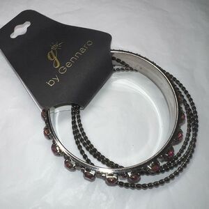 G by Gennaro Gunmetal And Pink Crystal Bangle Set