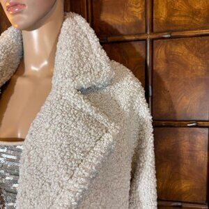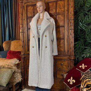 G by Giuliana Black Label Pale Gray Faux Shearling Teddy Double Breast Long Coat