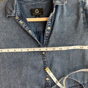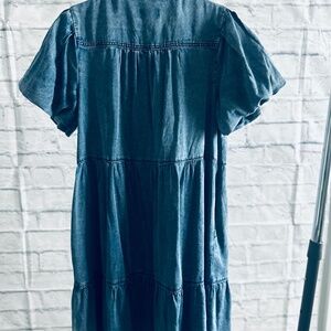 Stylish G by Giuliana denim dress featuring puff sleeves, a tiered silhouette, and button-front closure. Soft, lightweight denim makes it perfect for casual days or dressed-up looks with boots or sandals. Effortlessly chic and comfortable!