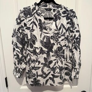 Chic monochrome floral top with elegant design. Ideal for versatile styling. Oversized / loose fit.