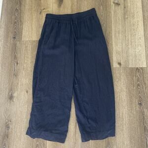 G by Giuliana Sz L Linen-Blend Navy Blue Crop Pants Wide Leg Pockets Pull On
