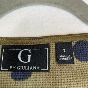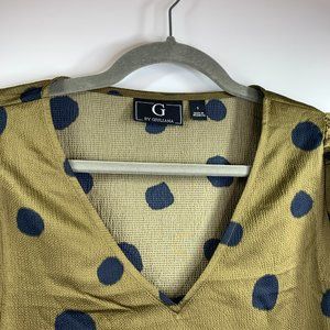 G by Giuliana V-Neck Puff Long Sleeve Blouse Size Small Olive & Black Dot NWT