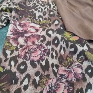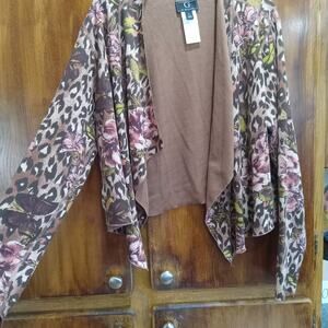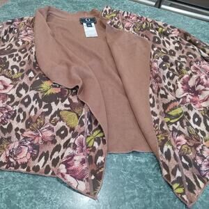 G by Giuliana Women's 1x Reversible Mocha Leopard Floral Open Cardigan Cropped