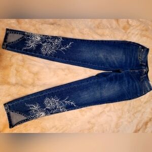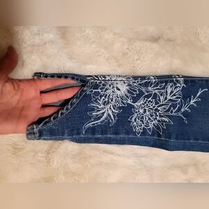 G by Giuliana Women's Floral Appliqué Boho Capri Slashed Ankle Jeans