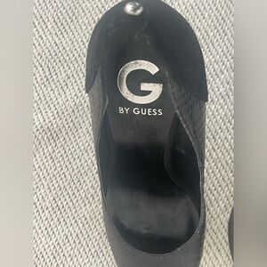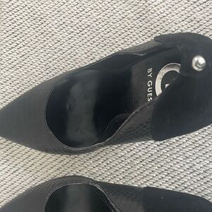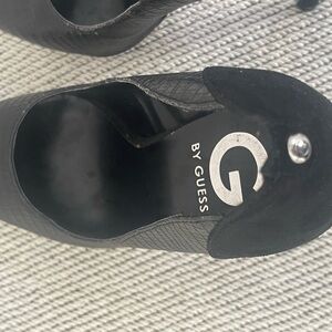 Step into elegance with G by Guess black heels, designed with a sleek slip-on style that offers both comfort and sophistication. Crafted from a smooth, leather-like material, these heels are perfect for adding a touch of class to any formal ensemble. The minimalist design ensures a timeless appeal, making them a versatile addition to your wardrobe.