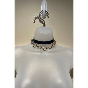 2 piece choker set Blue velvet and gold toned metal