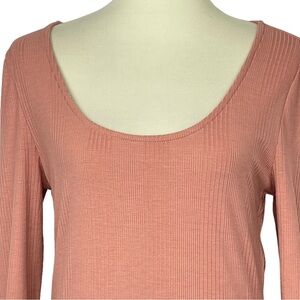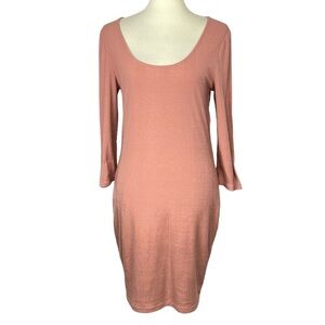 G by Guess Dress Womens Large Rose Pink Bodycon Strappy Open Back Long Sleeves. Very Good Pre-owned condition. No found flaws or stains. See photos for measurements. Ships quickly from smoke-free home.