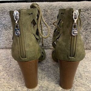 G by Guess Green Peep-Toe Booties Cut-Out Lace Up Women's Size 8