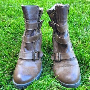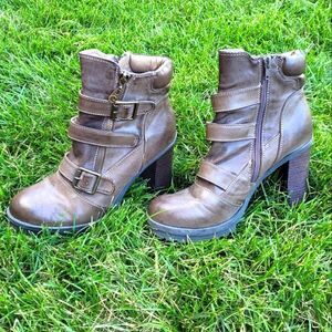 G by Guess Heeled Buckle/Strap Ankle Boots 8