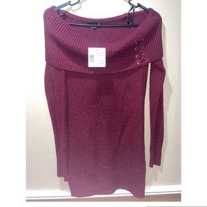 G by Guess Long maroon/burgundy sweater size small. Off the shoulder and longer hem. Never worn before and tags still on!