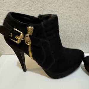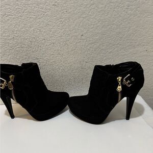 G by Guess Platform Suede Black Ankle High Heel Boots
