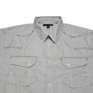 G by Guess Shirt Mens XL Gray Button Up Pinstripe Long Sleeve Pockets Western