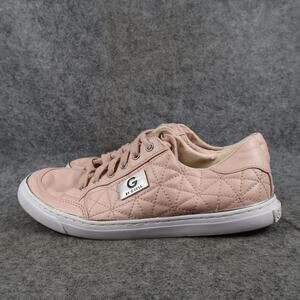 Used G by Guess Shoes Womens 8 Casual Sneaker Quilted Pink Lace Up Flat Fashion Logo