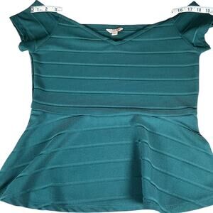 G by Guess Size Large Hunter Green Off The Shoulder Body Wrap Peplum Sexy Top