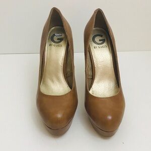 G by Guess Tan Platform Round Toe Chunky Heel Pumps • Size 7.5 🔴