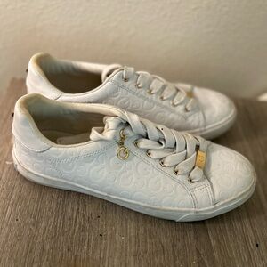 Chic sneakers with embossed design. Gold details enhance style. Ideal for everyday wear.