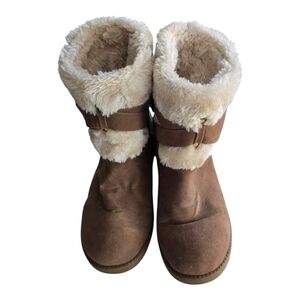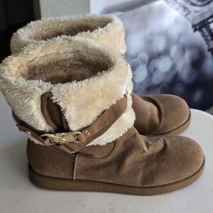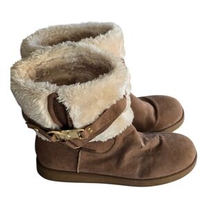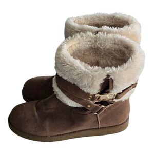 G by Guess Women Fur Boots Women 9 Brown White Ankle Winter Snow Gold Logo