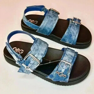 G by Guess Women’s Double Buckle Chunky Denim Sandals Size 8