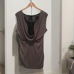 G by Guess Women’s Gray/Black Sleeveless Ruched Sides. Scoop neck front. Draped back.