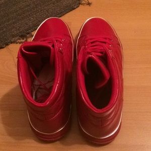 Patent hi top with quilted details on a vulcanized bottom and gold lining.