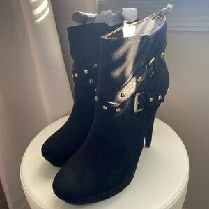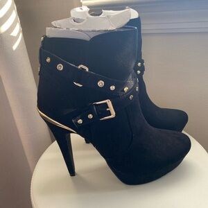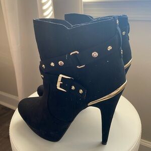 G by Guess women’s black Ankle Boots with Gold Accents size 10