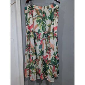 G by Guliana Printed Aria Mesh Tiered Maxi Skirt Green Tropical Parrot Sz 2X. Please note all measurements are approximate.