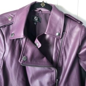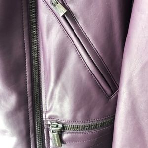 NWOT, never worn, still had tissue on a few of the zippers. Faux leather, stretchy. Black Spandex panel on arms to allow for comfortable give/fit.