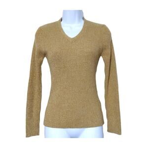 G2000 Womens Wool Blend Golden Tan V-Neck Knit Sweater Size 7