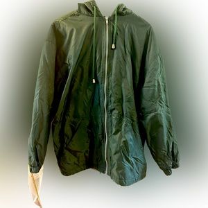 G2000 windbreaker jacket zip up hoodie green full fleece lining hooded small