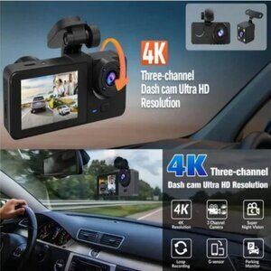 Capture every detail with the 4K Dash Cam. This sleek black camera offers three channels for comprehensive coverage. Perfect for ensuring safety on the road.