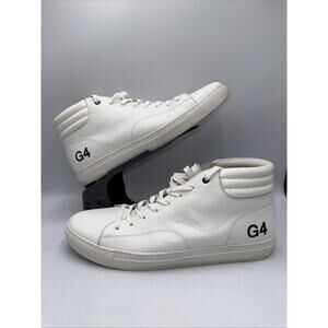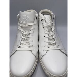 The G/FORE Mid Street Disruptor White Leather Shoes (G4MS19F10) in men's US size 12.5 are stylish mid-top athletic sneakers designed for casual or activewear occasions. Made with premium leather upper material and featuring a comfortable foam insole, these shoes provide both style and performance for activities like walking or golfing. The solid white color and clean design make them versatile for various outfits, while the fabric lining and leather outsole ensure durability and quality craftsmanship. Representing the brand's commitment to innovative design and high-performance footwear, these shoes are a must-have for any fashion-forward man looking for both style and functionality.