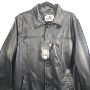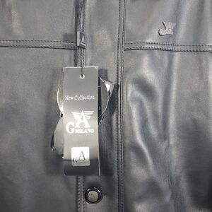 G.A Milano Italy Men's Medium FauxLeather Button Up Black Trench Blazer Jacket
