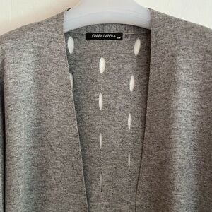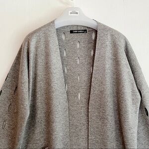 Gabby Isabella Distressed Wool Blend Heathered Gray Long Open Front Cardigan.