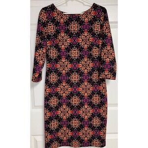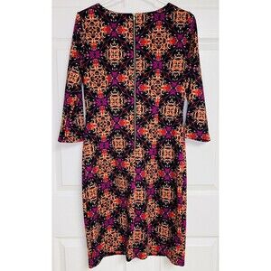 GABBY SKYE Size 8 Pink & Black Floral 3/4 Sleeve Midi Sheath Dress