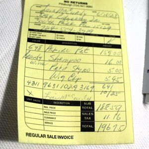 Includes styrofoam petite head, fishnet wig cap, nearly full bottle of Brandywine Non-Static Wig Shampoo, and original box and paperwork