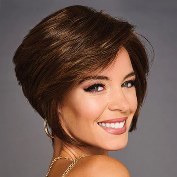 New in box with tags. Best in Class is a short, layered cut with a smooth graduated back to its tapered nape and a sweep of soft fringe with longer chin length side layers that frame the face. Average size Comfort cap with a 100% HAND-TIED TEMPLE-TO-TEMPLE LACE FRONT with an EXTENDED MONOFILAMENT PART. Resilient stretch material throughout cap base for a custom-like fit. Velvet lined ear tabs and nape. Ultra-thin hook and loop adjusters at nape for personalized fit. Made with HEAT-FRIENDLY Tru2Life fiber that looks and acts like human hair. Shade GF6-30 Copper Mahogany is dark brown with soft, coppery highlights. MSRP $308.00 USD