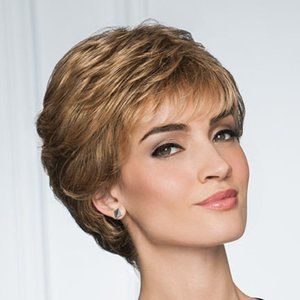 New in box with tags. Upper Cut is a short textured basic cut with all-over layered waves and a face flattering fringe bang. She has a HAND-KNOTTED MONOFILAMENT CROWN. Open cap is average size. Velvet lined front for comfort. Velvet lined ear tabs and extended nape with ultra-thin adjusters for a comfortable and secure fit. From the Gabor Luxury Collection. Shade GL38/48 Sugared Smoke. MSRP $249.00 USD