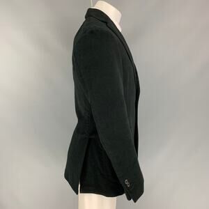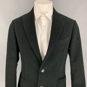 GABRIELE PASINI sport coat comes in a black cotton featuring a notch lapel, patch pockets, and a double button closure. Very Good Pre-Owned Condition.