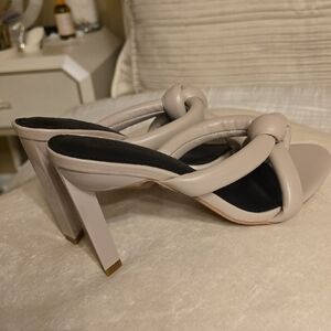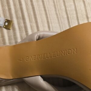 GABRIELLEUNION Tan Heeled Mules with Architectural V-Cut