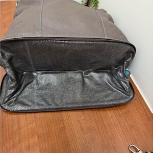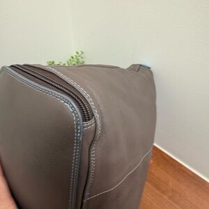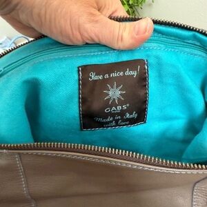 GABS Crossbody Messager Bag Made In ITALY Gray Soft Leather with Front flap. This is in excellent pre loved condition! This bag will meet all of your needs necessary for your day-to-day operation whether there would be carrying just small items or even a laptop. This bag this extra-large bag features a zipper closure, double handles, and a crossbody and shoulder strap for convenience. The metallic hardware adds a touch of sophistication, while the interior is lined with leather and cotton and includes inner pockets and a mobile phone pocket for organization. Perfect for any season, this tote shopper shoulder bag backpack is both fashionable and functional, making it a must-have for any wardrobe.