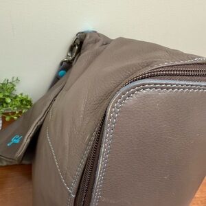 GABS Crossbody Messager Bag Made In ITALY Gray soft Leather EUC