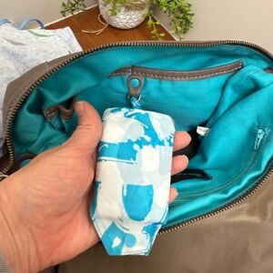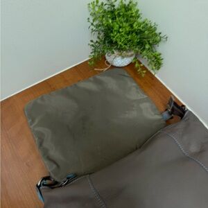 This is a bag with another bag inside that snaps of unsnaps as needed. Coms with a little rain/wind breaker as well. This comes from a smoke free home.