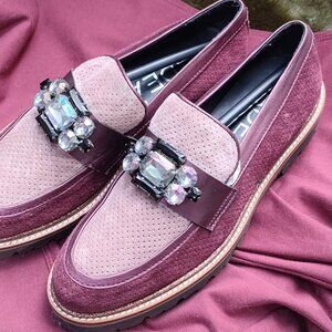 GADEA By Lodi Rhinestone Purple/Burgandy Suede Chunky Loafers, 39 8-8.5 - NWOT