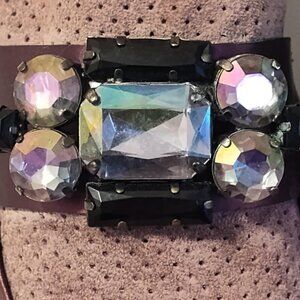 GADEA By Lodi Rhinestone Iridescent Gemstone Purple/Burgandy Suede Chunky Lug Sole Moccasin Loafers