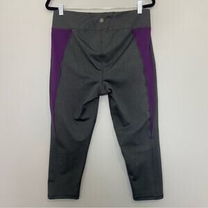 GAIAM Crop Capri Leggings Gray With Purple Detail Side Stripe XL
